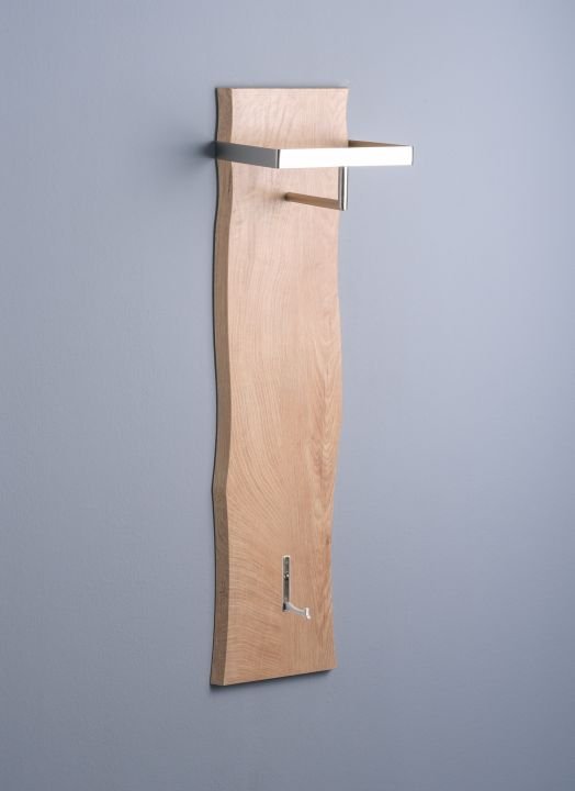Ausführung Baumkante MDF Dekor Eiche Haken 1 Haken Metall Edelstahloptik Haken ausklappbar Bügel Metall Edelstahloptik