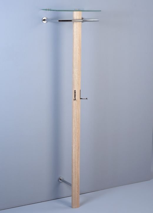 Ausführung MDF Dekor Sonoma Eiche Haken 2 Haken verchromt Bügel Metall verchromt Hutablage Sicherheitsglas klar, 8mm