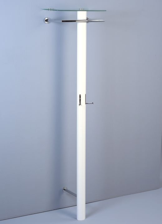 Ausführung MDF Dekor weiß Hochglanz Haken 2 Haken verchromt Bügel Metall verchromt Hutablage Sicherheitsglas klar, 8mm