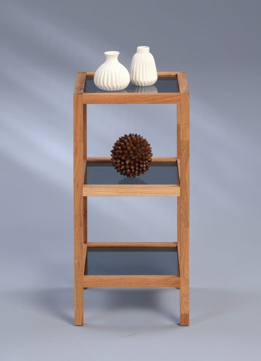Ausführung Walnuss massiv geölt 3 Ablagen Sicherheitsglas grau